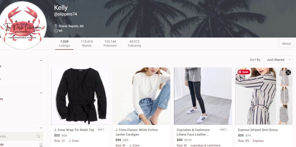 Here’s a peek at the home page of my Poshmark closet.
