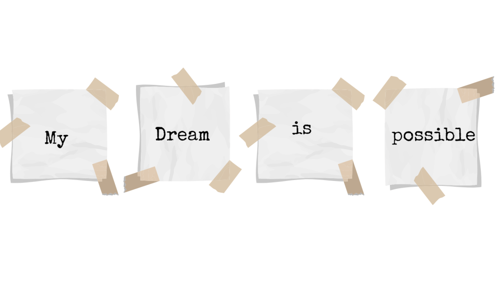 Step number one to leveling-up. Stop making excuses. That may sound harsh, but for many people it is reality. We all have a reason for why we can’t get started, why something might not work out, and why it is easier to just dream about what we want instead of taking the steps required to get there. Instead of allowing yourself to inaccurately assume that what you want is not within your reach, you need to build your mindset and train your brain to believe that everything is possible. Start with a simple affirmation. My dream is possible. Say it out loud so you can hear yourself say it. Repeat it as often and as loudly as you like. Write it out and tape it somewhere where you will see it every day.
